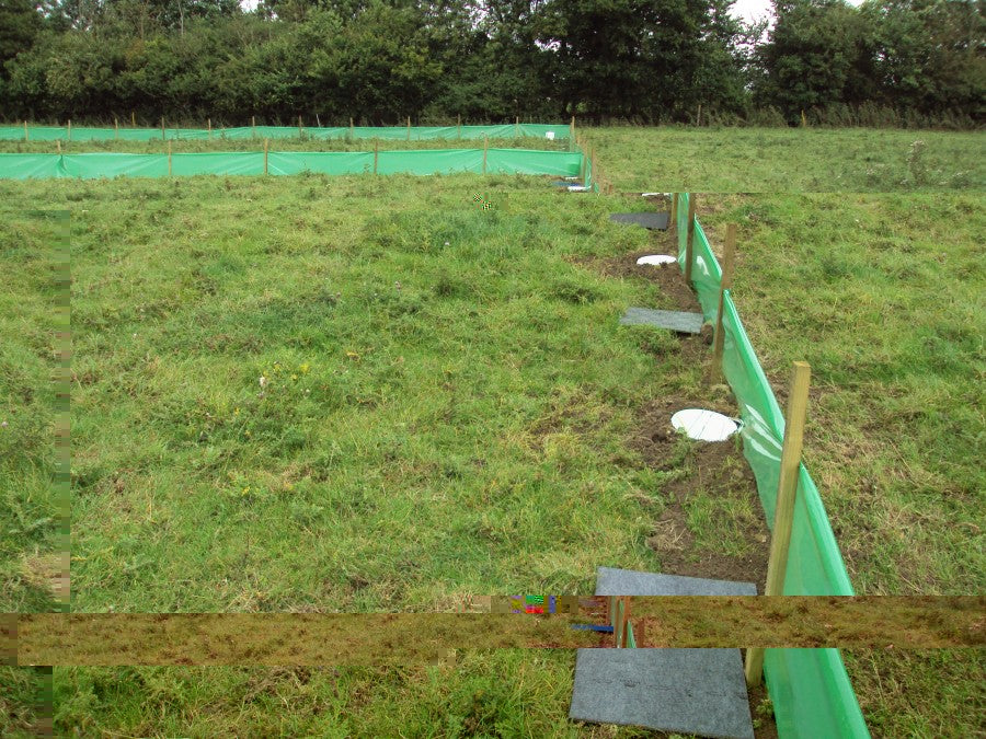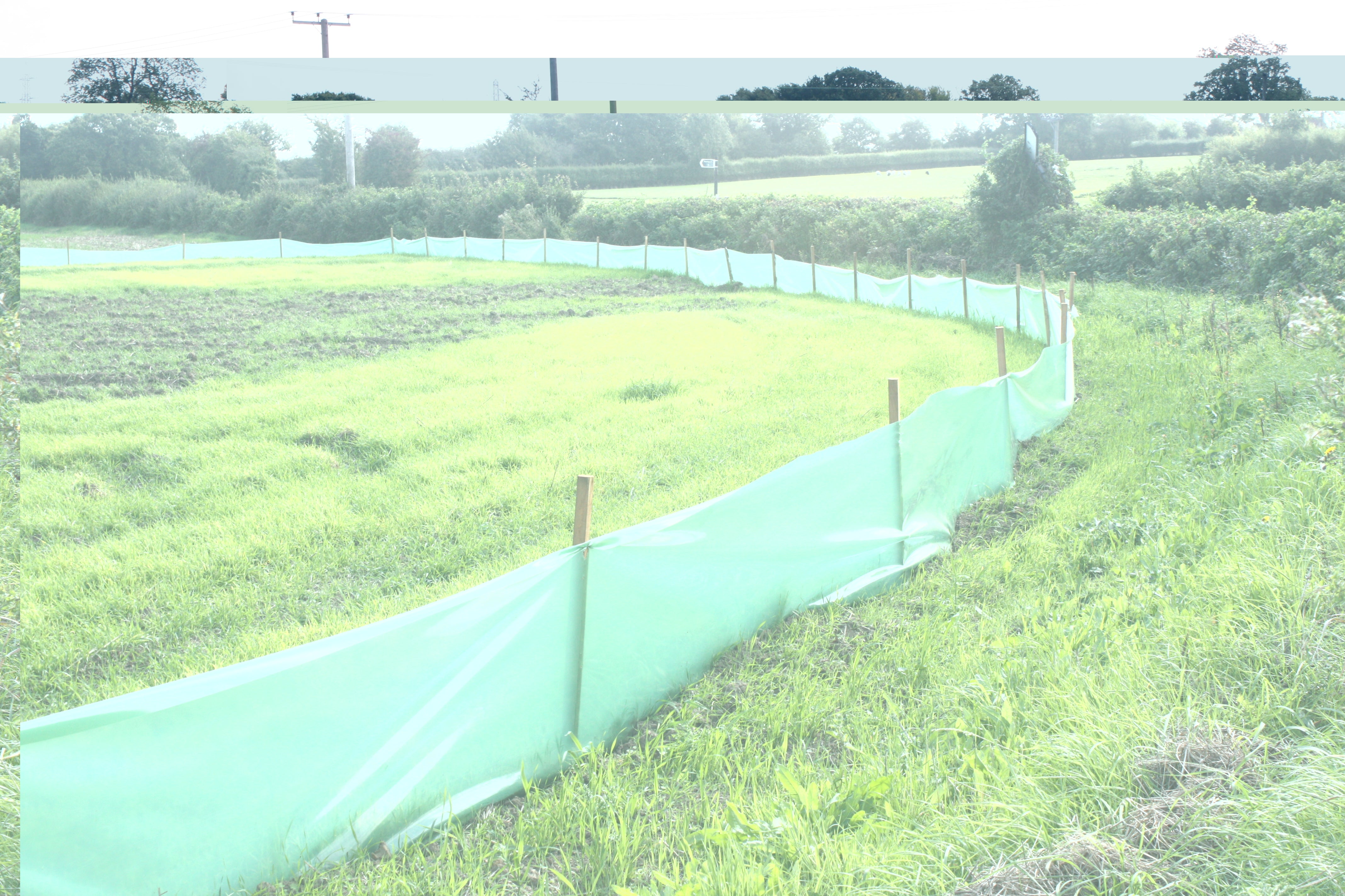 A newt barrier fence is a low-impact, semi-permanent plastic or geotextile fencing system designed to keep great crested newts and other amphibians safely contained or excluded during construction or land management work. Installed slightly buried at the base and standing about 30–50 cm high, it prevents newts from crossing into hazardous areas while allowing easy inspection and relocation by ecologists.